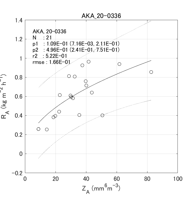 | 説明 | skr20-0336_disdro-01.png : Fig. 6-1 Density plots of the particle size and fall velocity of volcanic ash particles. | |||||||||